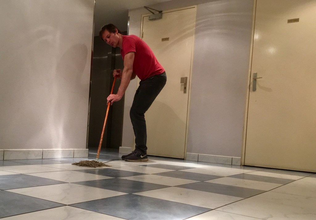 Dimanche 5 avril, quelques résidents ont commencé à nettoyer leur cage d’escalier.