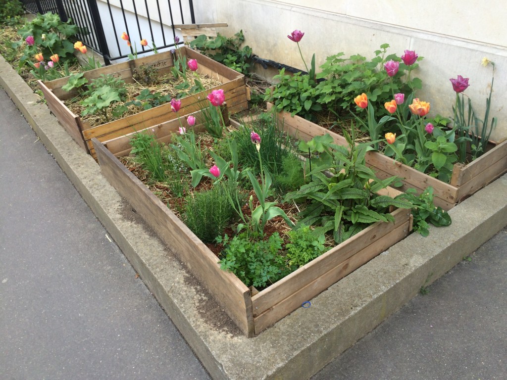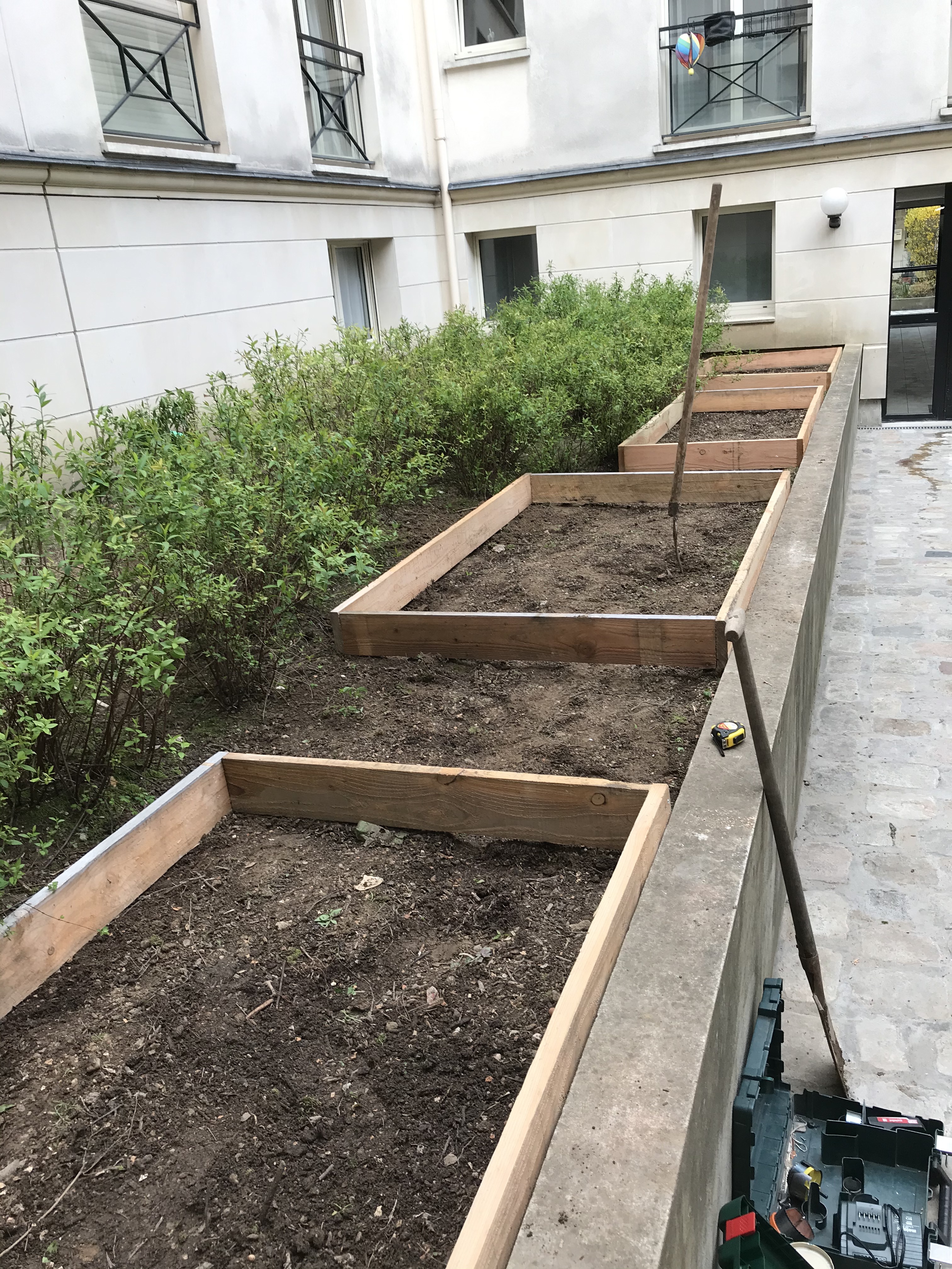 Et enfin nous avons fabriqué des bacs pour délimiter les espaces des futurs jardins partagés.