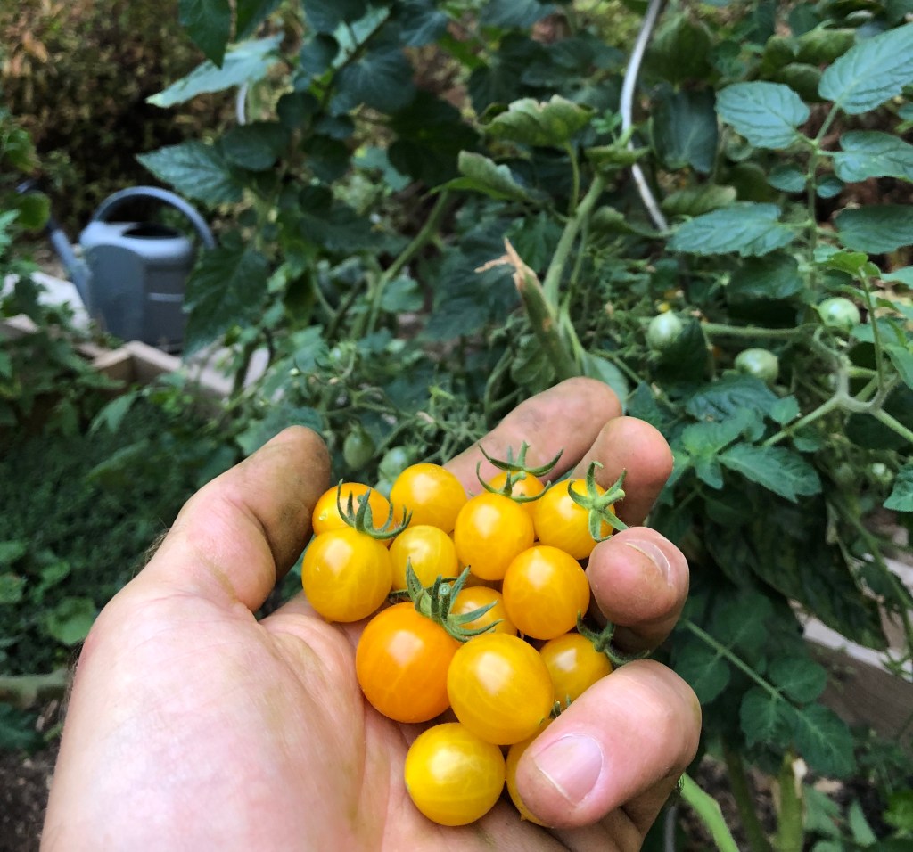 Salades, fraises, framboises, haricots, fèves et tomates cerises…